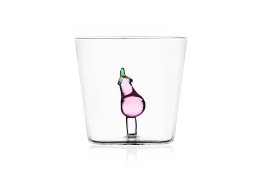 Bicchiere Tumbler Melanzana in vetro borosilicato. Articolo della collezione Vegetables di Ichendorf.