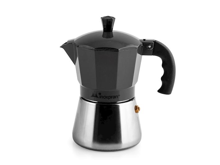 Caffettiera in alluminio con caldaia in acciaio inox inoxpran tazze 3 colore antracite. adatta a tutti i piani cottura compreso l’induzione.