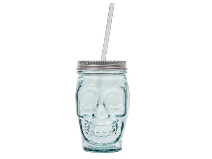Confezione 6 bicchieri vetro reciclato skull con cannuccia 45 cl