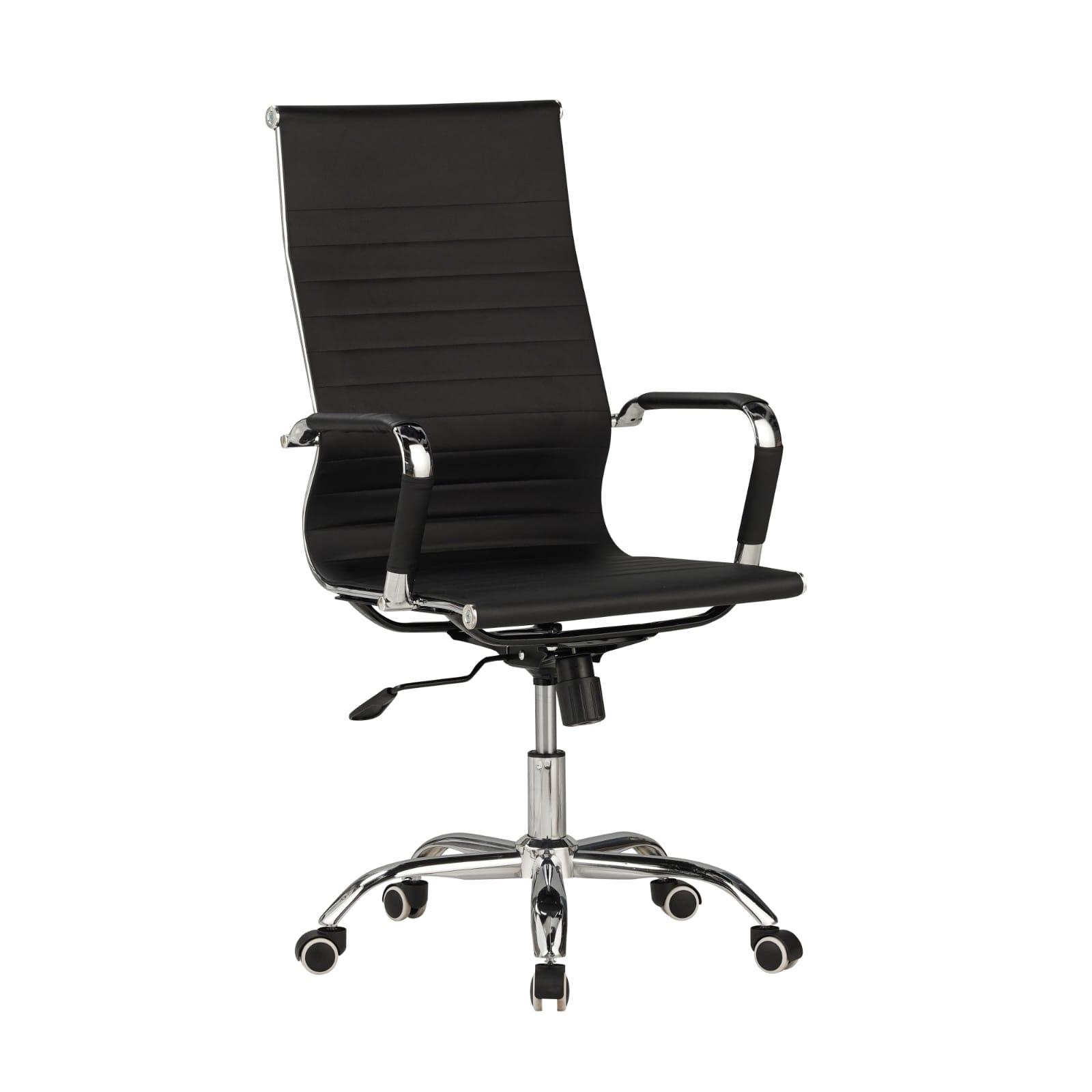 Sedia da Ufficio Girevole Nero, Schienale Alto, in ecopelle nera, design ergonomico – struttura in metallo – altezza regolabile