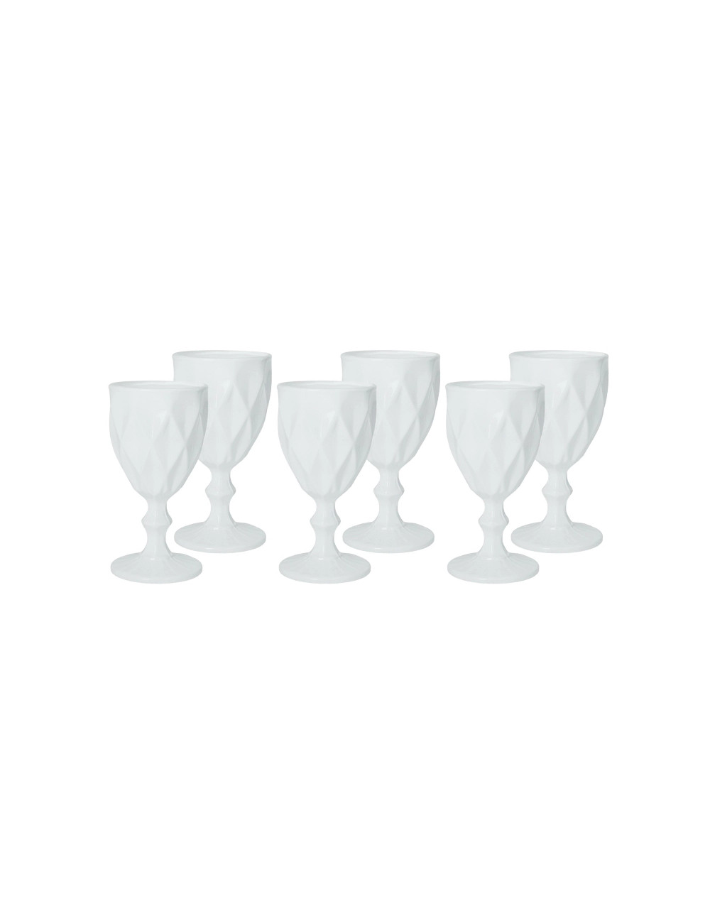 Nuova versione della collezione Diamante, che da cangianti trasparenze colorate si propone oggi in una versione total white mantenendo l’eleganza e la qualità del vetro di cui si compone. Un bianco brillante che, unito ai piccoli rombi che ne disseminano la superficie, rende il calice Diamante un set da 6 pezzi pensato per esaltare ogni mise en place.